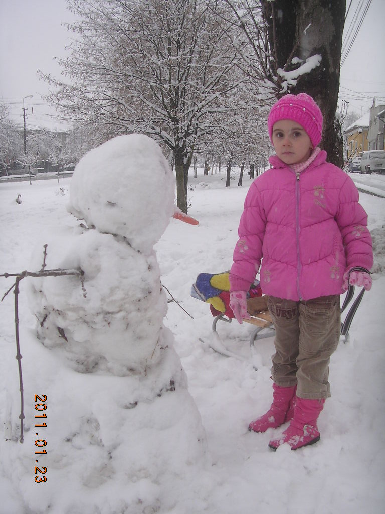 Peste noapte a nins şi pe pământ se aşternuse un strat frumos de zăpadă. De dimineaţă a mai nins puţin, apoi ninsoarea s-a transformat în acel tip de ninsoare mocănească. În jurul amiezii Ioana m-a rugat să facem un om de zăpadă. Deşi aveam alte planuri, am acceptat invitaţia ei şi am ieşit să facem acel "om de zăpadă".