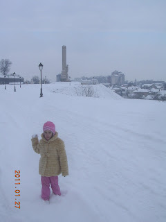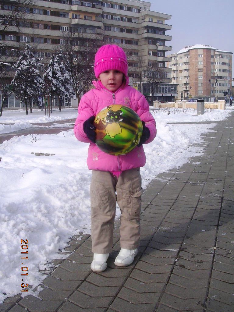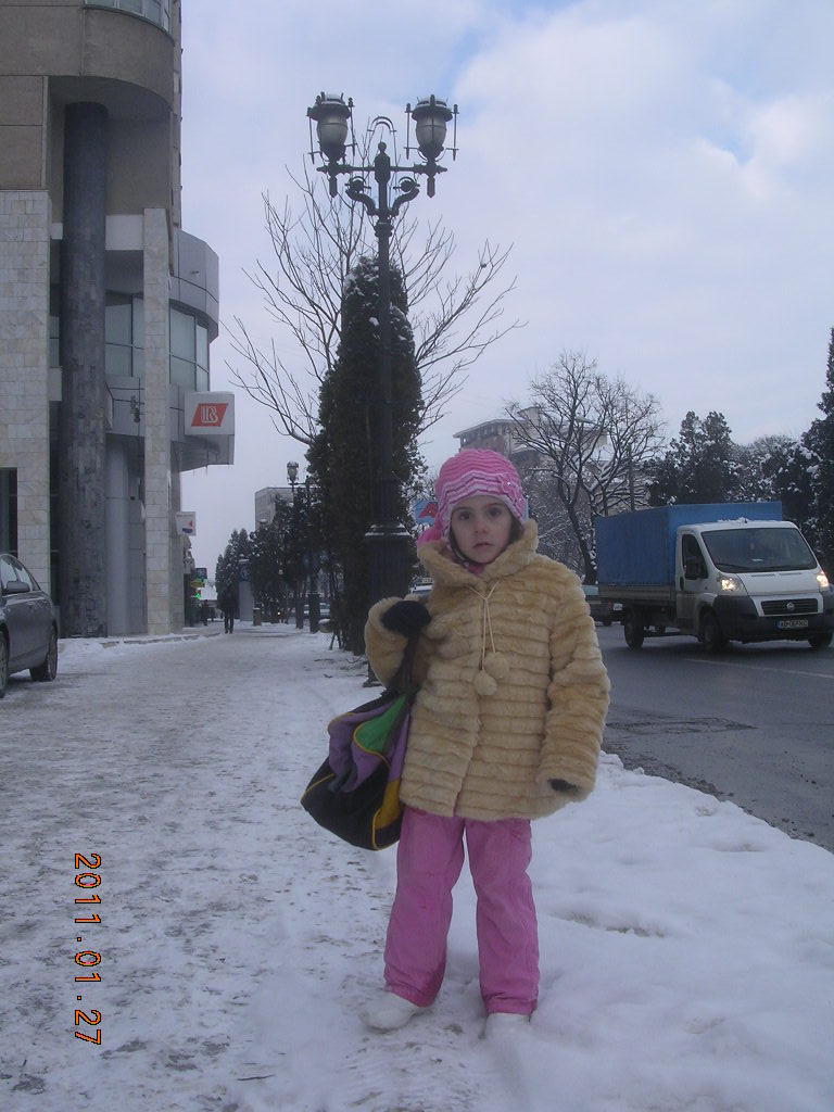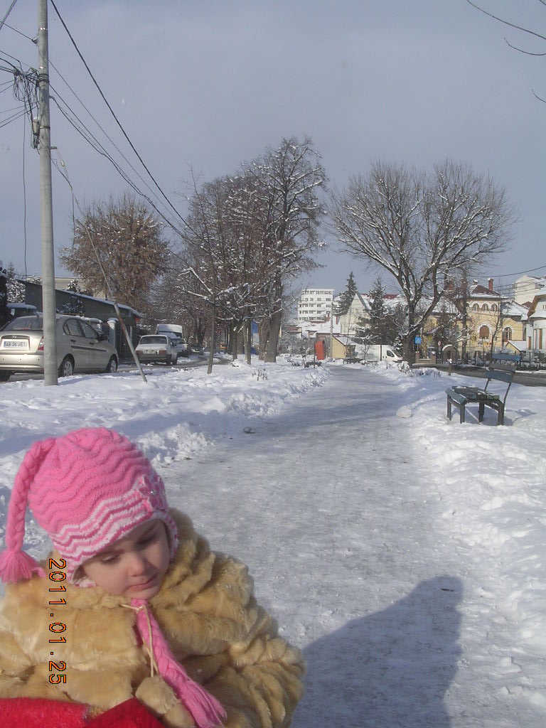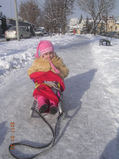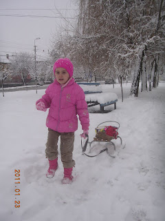 Ioana sta cuminte în casă. I-am spus să întrebe pe mamă-sa şi pe tată-so dacă o lasă cu sania. Fără nici un alt răspuns i-au pus hăinuţele în braţe. Am îmbrăcat-o, am luat săniuţa şi din nou la drum. Am parcurs o distanţă destul de mare după care Ioana a spus: "moşu, acum hai acasă !" Hai !