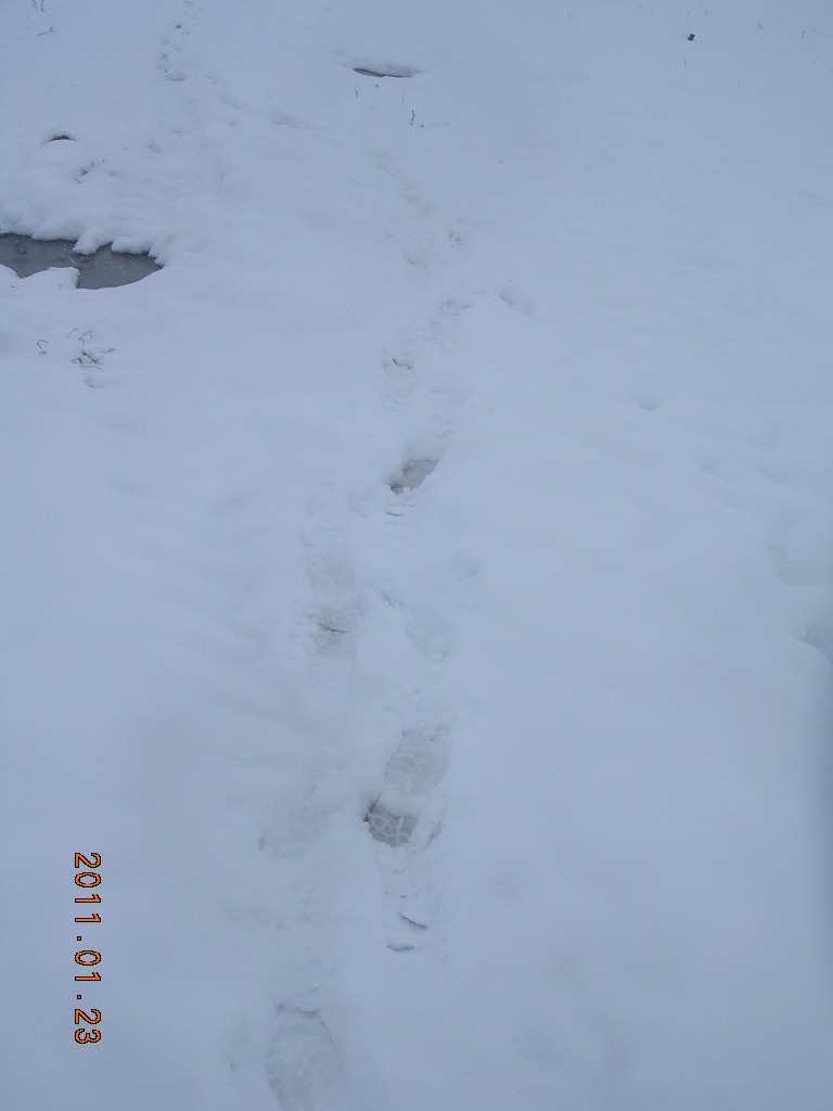 De la un timp am dus-o în casă iar eu, tiptil, am plecat la plimbare pe câmp.Mă gândeam că nu voi putea merge din cauza noroiului, dar un temerar a făcut urme înaintea mea. Aşa că, m-am încumetat şi am plecat la drum prin zăpada aşternută peste pământul dezgheţat.