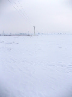 Trec fără probleme şoseaua de centură şi deodată mă trezesc în zăpadă până mai sus de genunchi. Vântul o troienise pe unde a putut. Puţin mai departe nu depăşea nivelul gleznelor. Pe câmp mai erau nişte urme. Un temerar m-a întrecut, dar urmele lui au luat-o în altă direcţie. Din acel loc era doar o masă întinsă de omăt.